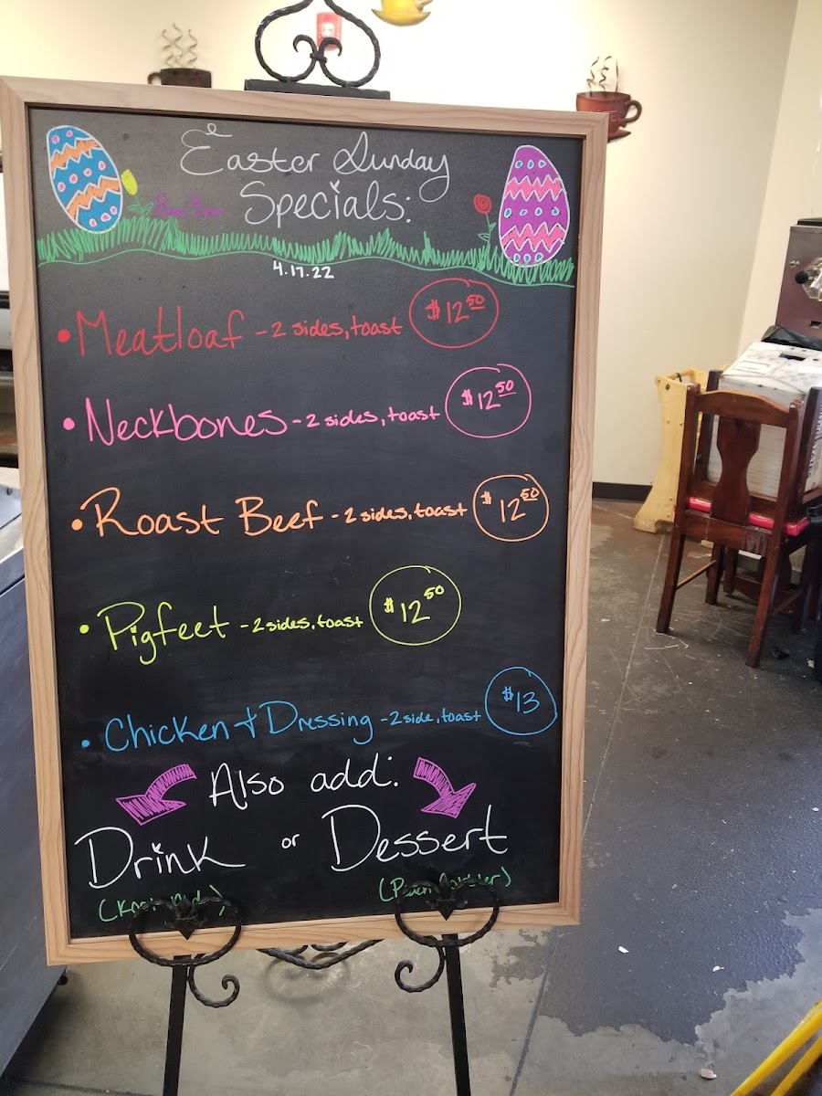 Guests often enjoy these dishes during relaxed lunch or dinner outings, or for a flavorful takeout experience that feels like a warm, homemade meal. The variety of sides—like okra, candied yams, and collard greens—changes regularly, adding a fresh touch that complements the main courses. For those looking to start the day with a comforting breakfast, options like French toast, bacon, and eggs provide a familiar, satisfying start.